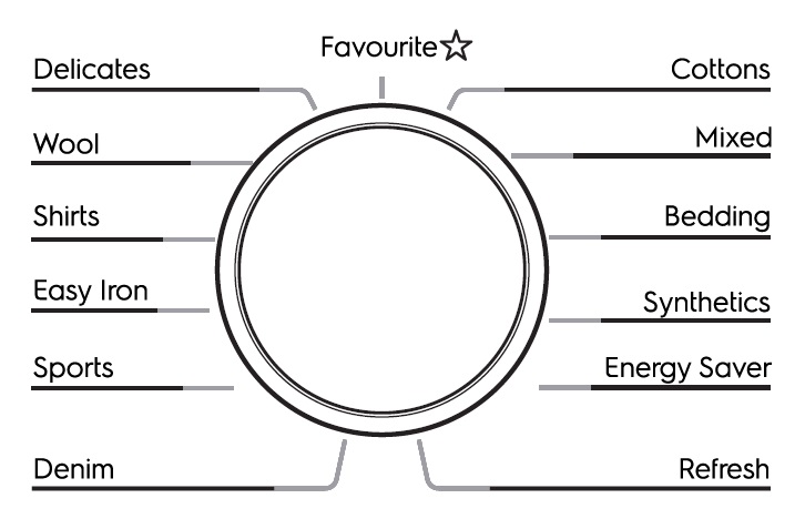 • Drying programmes: Countdown Indicator, Stack with Stacking Kit, Side by Side, Bedding, Cottons, Delicates, Denim, Easy Iron, Energy Saver, Favourite, Mixed, Refresh, Shirts, Sports, Synthetics, Wool